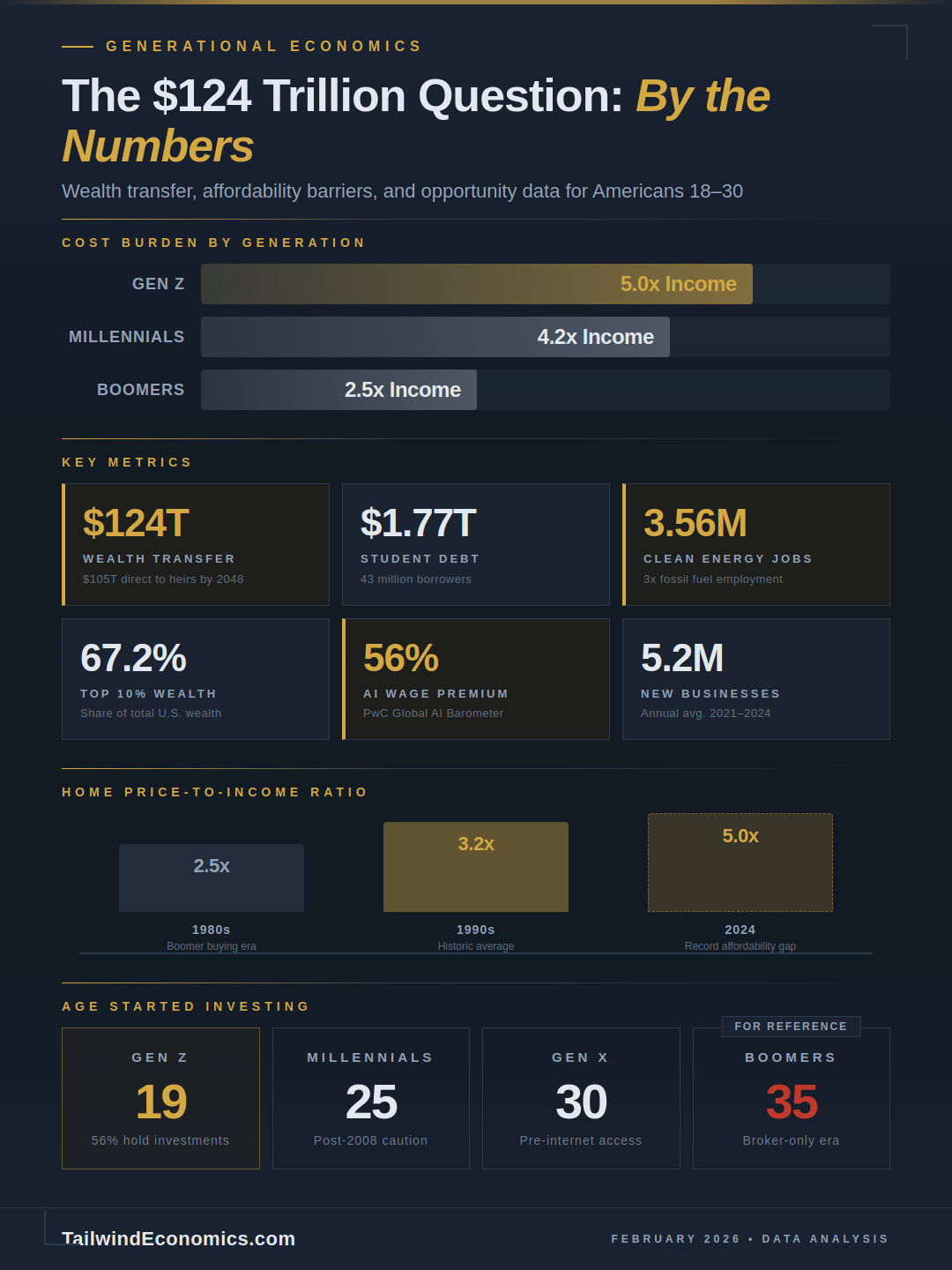 The $124 trillion transfer will reshape American wealth over the next two decades. But the more consequential story is whether a generation armed with unprecedented access to markets, positioned at the frontier of two simultaneous technological revolutions, and motivated by economic necessity can build wealth through productivity and strategic positioning rather than inheritance alone. The data suggest they are already trying. Whether the structure of the economy lets them succeed is the defining economic question of the next decade.